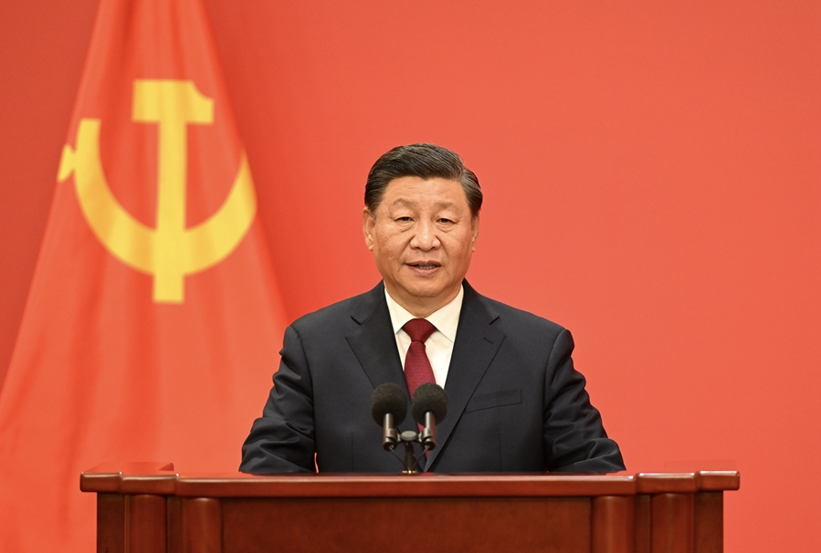 中國共產黨第二十屆中央委員會第一次全體會議新選出的中央政治局常委于23日中午12時許,同采訪中共二十大的中外記者見面。