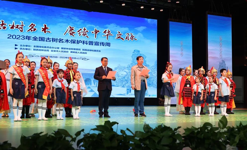 9月25日,以“保護古樹名木賡續中華文脈”為主題的2023年全國古樹名木保護科普宣傳周在陜西省延安市黃陵縣啟動。啟動儀式上,上線了全國古樹名木智慧管理系統,發布了“雙百”古樹推選結果,向全社會發起保護古樹名木的倡議。