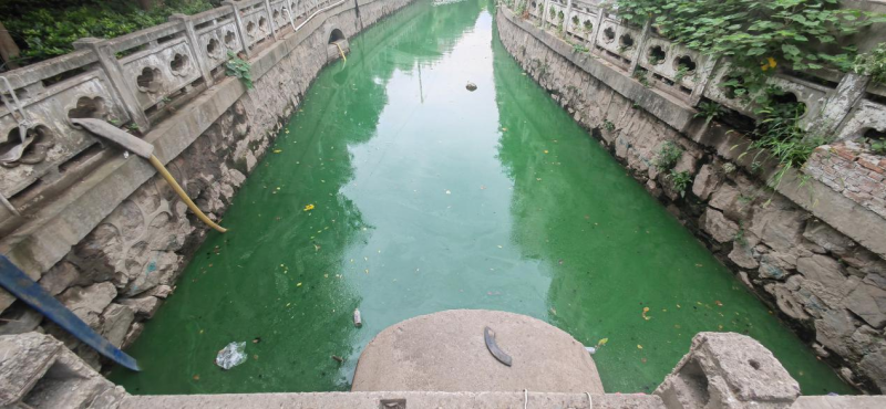 圖1 2024年8月15日,督察人員暗查發現,泰州靖江市老十圩港水體污染嚴重