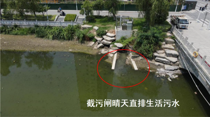 圖3 2024年7月3日,督察人員暗查發現,徐州市睢寧縣小沿河沿岸截污閘污水直排入河,河道水質重度黑臭