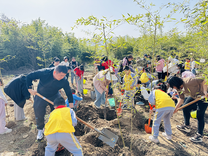 “難得周末有空,陪孩子加入到‘我為大熊貓種棵竹’活動中來,既增加了孩子的戶外興趣,也培養了他的生態保護意識?!蔽囱肼沸W學生家長說。