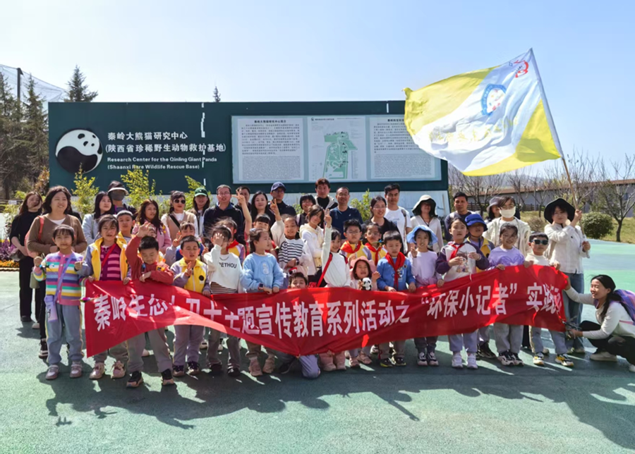 種植任務完成后,環保小記者團前往秦嶺四寶科學公園參觀?!按笮茇埵终朴辛??”“它們的黑眼圈其實是‘防曬霜’!”科普競答環節,主持人拋出的熊貓冷知識點燃全場熱情。在這里,大家不僅了解到大熊貓的飲食習慣、繁殖特點以及科研人員為保護大熊貓所做出的努力,還觀察了其他可愛的珍稀動物,看到它們的生活環境和飼養過程,深刻感受到這些珍稀動物的珍貴與脆弱,對珍稀動物的保護工作有了更直觀的認識。