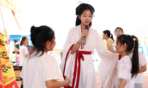 “劇本殺共有九大互動場景,分別為飛花令、即興劇場、決戰江湖等,游客們與NPC即興飆戲,贏取銀票,可兌換石敢當拓印、盲盒抽獎以及景區項目免費體驗券等。下一步,泰山石敢當文化園將繼續深化‘文化+旅游+科技’融合發展,歡迎大家來石敢當文化園游玩體驗?!笔耶斘幕瘓@運營負責人何少磊說。