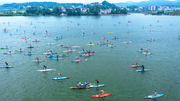 隨著越來越多的水上運動愛好者尋“浪”而來,邵陽縣借勢擦亮文旅名片,不斷完善水上休閑運動項目的配套設施,推出水上飛人、槳板培訓、水上快艇娛樂等體驗活動,形成集體育競技、體育文化、旅游休閑于一體的水上運動聚集地,打造水上國民休閑旅游目的地。