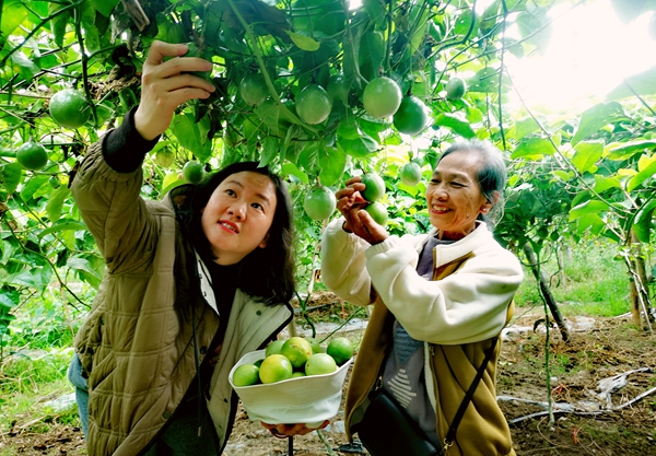 金秋時節,“金”果飄香。10月26日,走進廣西桂林市灌陽縣觀音閣鄉自振村的百香果種植基地里,沉甸甸的百香果掛滿枝頭,不少游客穿梭其間,采摘百香果,共享收獲喜悅。