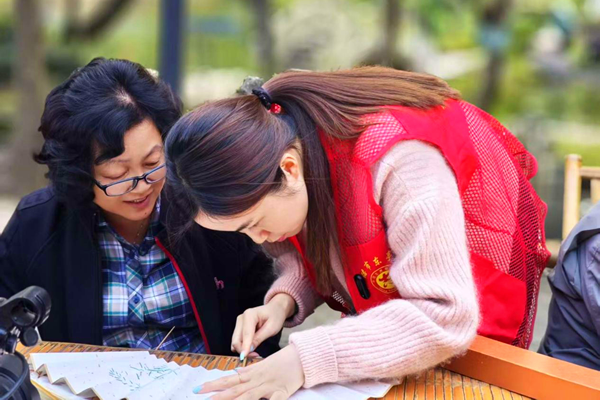 志愿者們通過精美的宣傳折頁和短視頻,為上??腿藗冋归_了一幅東亭的“康養畫卷”。從蜿蜒的“竹鄉畫廊”旅游風景道,到秀美的東亭湖生態文化旅游區,再到世康世外桃源、樂府山莊等康養項目……東亭作為“長三角康養運動休閑示范基地”的活力與潛力,讓在場的每一位賓客都心生向往。而從“心動”到“情動”,從一場指尖上的非遺體驗開始。