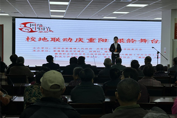 近日,安徽省合肥市肥西縣紫蓬鎮老年學校紫蓬家園分校內歡聲笑語、暖意融融。為進一步深化校地合作,賦能鄉村振興,由紫蓬鎮人民政府與共青團徽商職業學院委員會聯合主辦的“網絡中國節·重陽”文藝匯演熱烈舉行,徽商學院學生志愿者以青春活力傳遞尊老敬老情懷,為銀齡群體送上節日祝福。