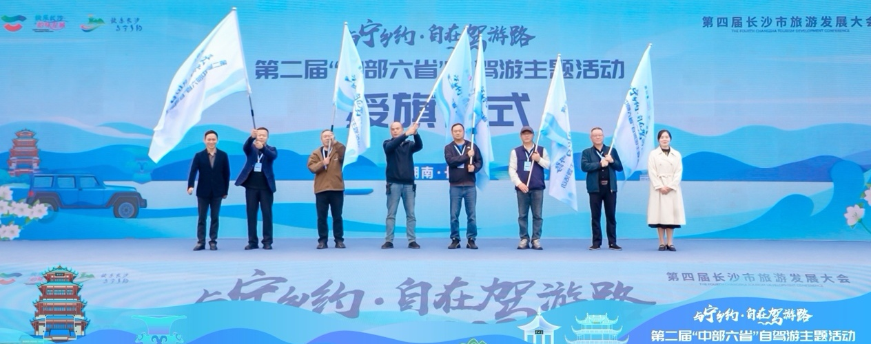 寧鄉市人民政府副市長段志斌、湖南省自駕旅游與房車露營協會會長楊國林分別致辭,分享對活動的期待與中部文旅發展的愿景?,F場,湖南省文化和旅游廳市場管理處三級調研員盧珉、長沙市文化旅游廣電局黨組副書記曹凜為中部六省自駕游協會代表授旗,傳遞區域文旅協作的使命。長沙市人民政府副秘書長羅予武指出中部六省文旅資源豐富,自駕游是區域文旅融合的重要紐帶與引擎,本次活動是對首屆合作成果的傳承升級;并介紹了長沙多元文旅優勢及自駕游產業發展成果,強調寧鄉為活動提供良好基礎;明確活動旨在打破區域壁壘、推動產業高質量發展并打造中部文旅合作金字招牌,提出共筑交通網絡、共推文旅產品、共造旅游環境的合作倡議,呼吁秉持開放包容互利共贏理念推進中部文旅發展。
